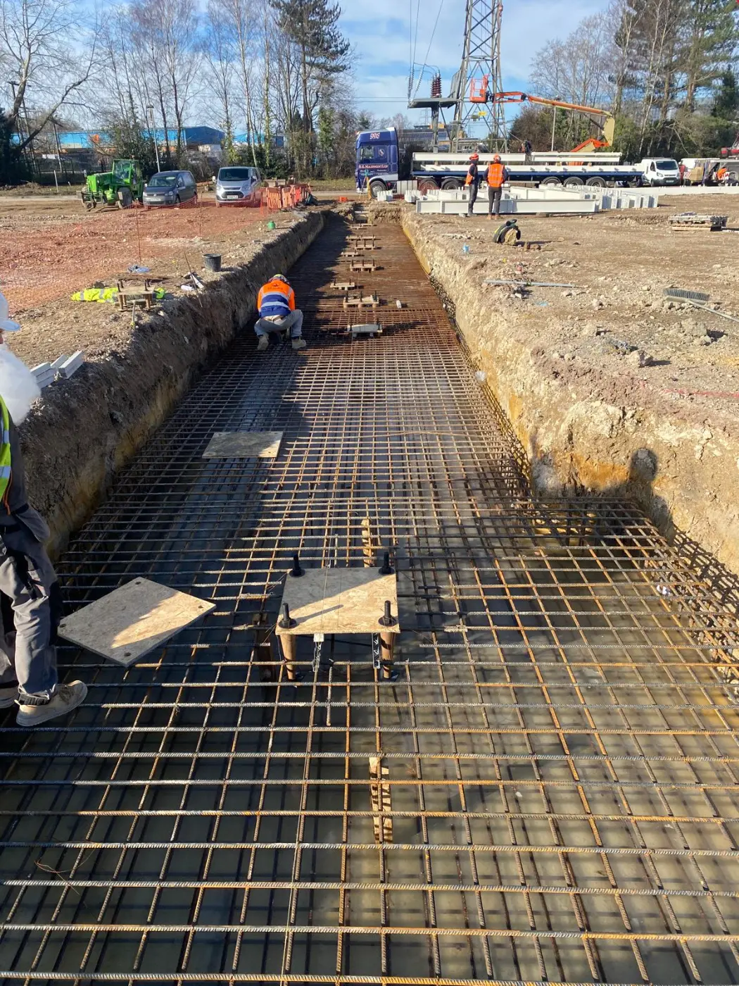 Reinforced with over 3,000 m² of A393 mesh and finished with over 300 m³ of C35 concrete