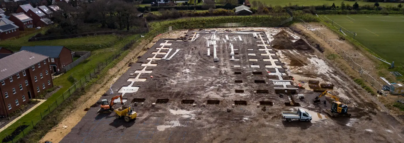 Once construction commenced the sites natural ground conditions left the area waterlogged and unworkable for any trades to operate, causing potential delays.